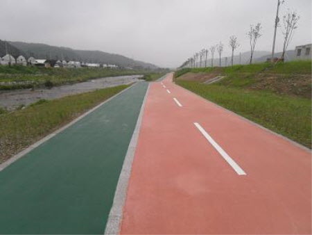 양지천 산책로 및 자전거도로 > 칼라콘크리트포장시공